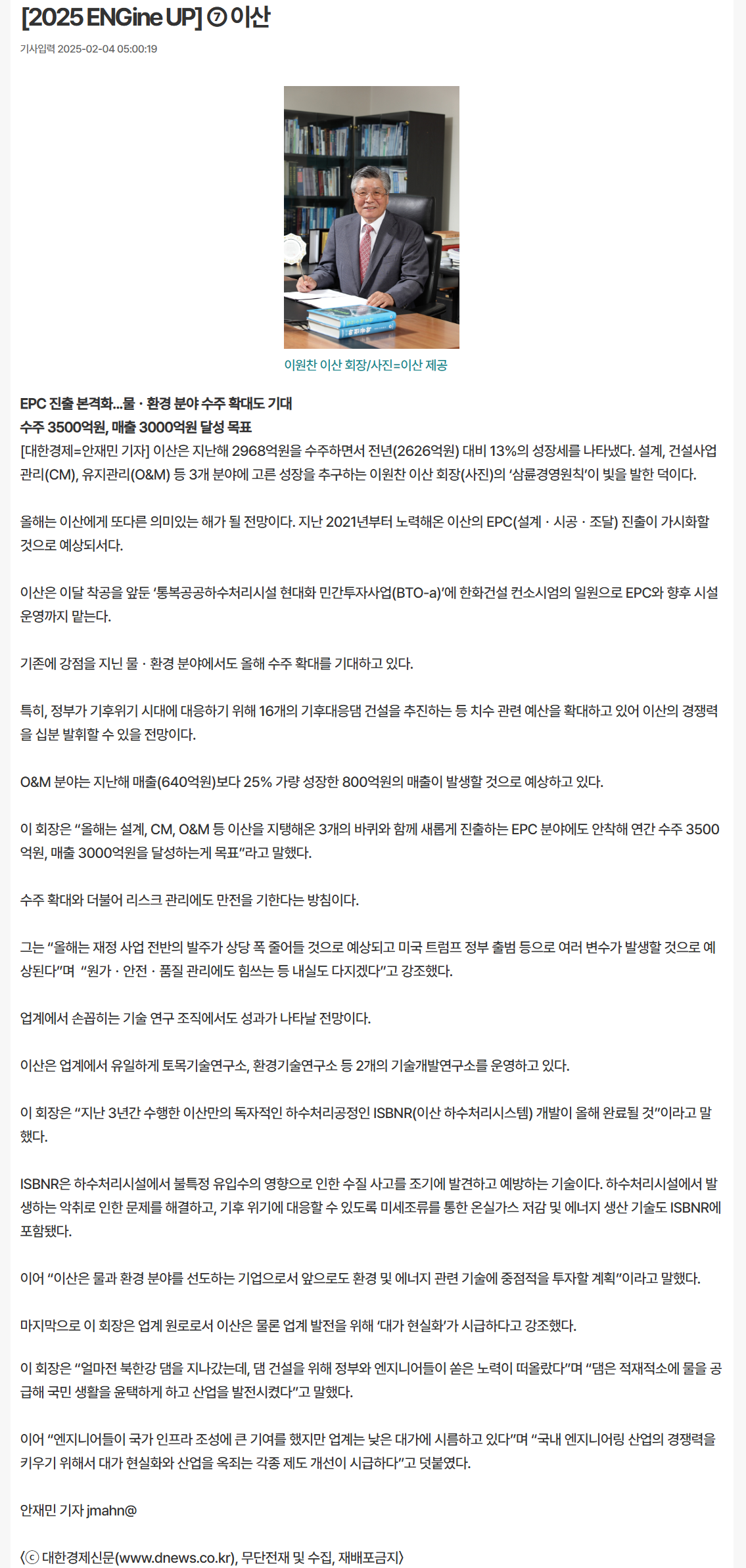 EPC 본격 진출 "물ㆍ환경 분야 수주 확대"