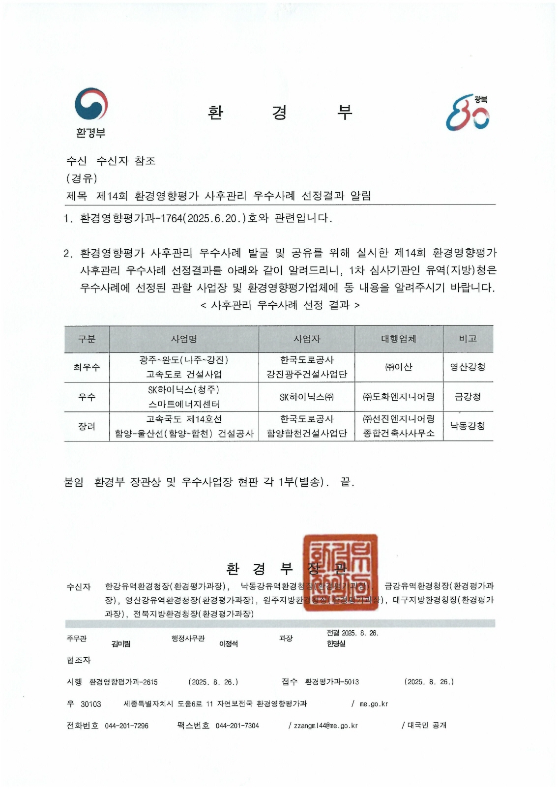 2025 환경영향평가 사후관리 우수사례 공모전 입상